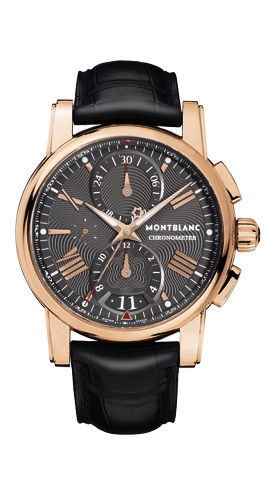介绍:44毫米18K玫瑰金表壳,18K玫瑰金表冠带珍珠母贝Montblanc六角白星标志,瑞士官方天文台认证自动上链计时机芯,烟色雕纹表盘,镀玫瑰金指针和刻度,日期显示,蓝宝石水晶玻璃表背,黑色鳄鱼皮表带,18K玫瑰金扣针式表扣。