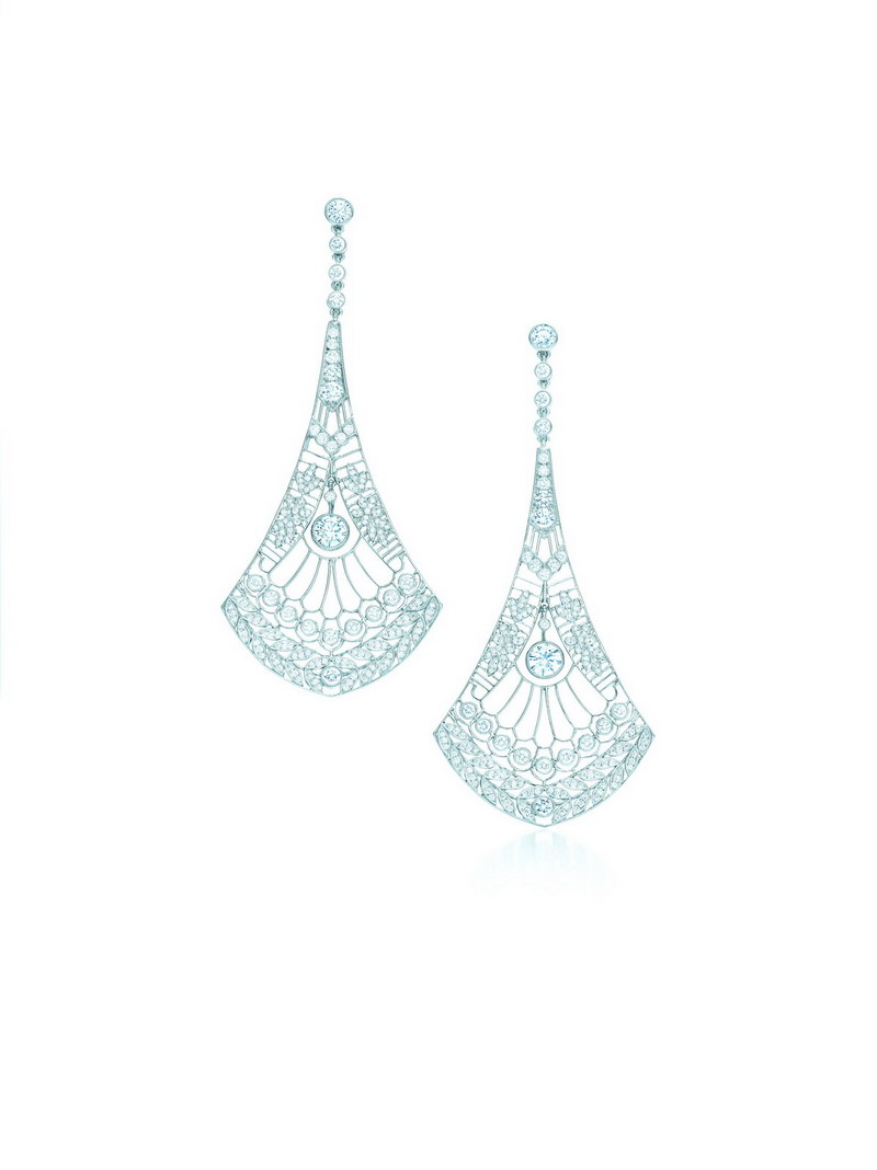 介绍:灵感来自蒂芙尼典藏设计中19世纪中期的美丽项链设计。这些耳环都是怀旧的“花环风格”,源自精致蕾丝 - 镂空设计带来轻质和优雅。 材质:钻石 产地:美国